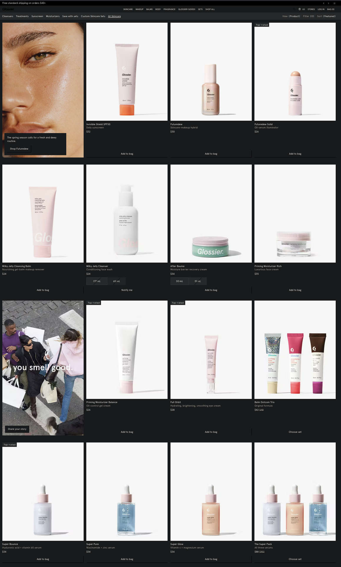 When I visit the skincare section today, I see a grid of products.